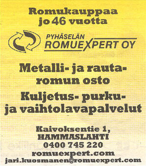 Pyhäselän RomuExpert Oy:n toiminta-ajatuksena on metalliromun myynti, hankinta, lajittelu sekä toimitus edelleen jalostettavaksi sulattamoille sekä teollisuuden raaka-aineeksi. Palveluihimme kuuluu myös romun kuljetus ja nouto edullisin hinnoin.